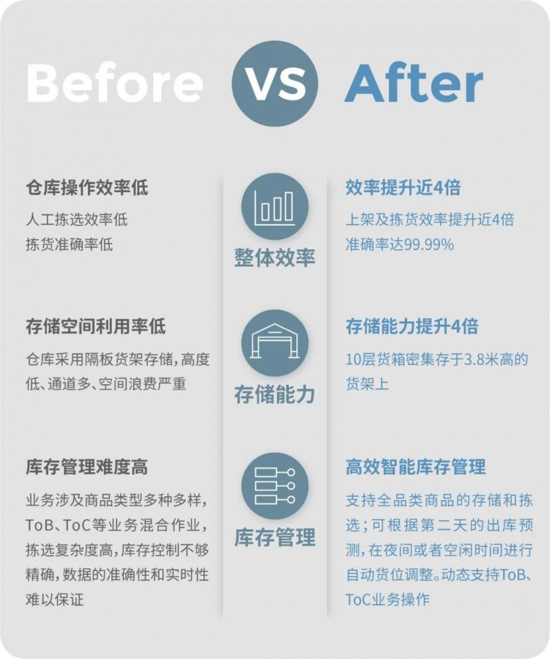 全球AMR引領者極智嘉(Geek+)的全能型貨到人揀選方案PopPick成功落地某辦公耗材知名企業(yè),助力其揀選效率和存儲能力均提升近4倍,以高創(chuàng)新力和高質(zhì)量交付能力為客戶創(chuàng)造真實商業(yè)價值。