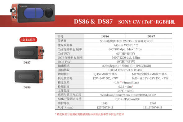 瞄準AGV/AMR領域-維感科技發(fā)布高性價比RGB-D ToF相機DS86/87