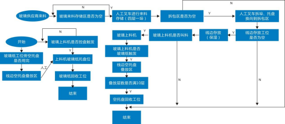 圖表:光伏行業(yè)關(guān)節(jié)機(jī)器人應(yīng)用現(xiàn)狀關(guān)節(jié)機(jī)器人主要運(yùn)用在了電池片焊接、排版、裝邊框、注膠等環(huán)節(jié),而移動(dòng)機(jī)器人主要用于不同工序之間的工序?qū)印?/span>在光伏行業(yè)生產(chǎn)線上,從上游到下游需要用到多種不同類型的AGV。一般會(huì)用到叉車AGV對(duì)冶金級(jí)別的硅礦(若原料為太陽(yáng)能級(jí)多晶硅材料,則采用潛伏頂升式AGV)等原材料進(jìn)行運(yùn)輸,將原料送上產(chǎn)線進(jìn)行裝料,在高純度石英干過中按層次裝入塊料、粉料、顆粒料、摻雜劑然后放入石墨坩堝合爐,再進(jìn)行抽空檢漏→壓力化→化料→引晶→縮頸→放肩→轉(zhuǎn)肩→等徑生長(zhǎng)→收尾、停爐的步驟。電池生產(chǎn)工藝環(huán)節(jié)空間適中,標(biāo)準(zhǔn)化程度高,規(guī)模較大。在傳統(tǒng)生產(chǎn)模式中有大量的工藝對(duì)接及半成品上下料搬運(yùn)對(duì)接由人工完成,在人員、流程管理、同步時(shí)效性上對(duì)用戶有一定困難及挑戰(zhàn):①生產(chǎn)現(xiàn)場(chǎng)要求24小時(shí)連續(xù)作業(yè),作業(yè)人員3班輪替,勞動(dòng)強(qiáng)度大,導(dǎo)致人員流動(dòng)性較大,企業(yè)管理成本劇增;②人工在生產(chǎn)設(shè)備前上料時(shí),雙手只能同時(shí)操作單個(gè)電池片載具依次上料,效率低下;③生產(chǎn)工藝復(fù)雜,對(duì)物料上料時(shí)的擺放、朝向、整齊度都有嚴(yán)格要求,要求作業(yè)人員低容錯(cuò)率和規(guī)范化作業(yè),如在太陽(yáng)能電池片生產(chǎn)過程中,有一道工序是將硅片插入花籃中,并將插滿硅片的花籃運(yùn)輸至其它工藝設(shè)備處,以進(jìn)行后續(xù)生產(chǎn)作業(yè)。為了將硅片準(zhǔn)確地插入花籃中,一般通過工作人員人工操作,一片一片地將硅片插入花籃中。此外,將插滿硅片的花籃運(yùn)輸至其它工藝設(shè)備處也是通過工作人員人工搬運(yùn)實(shí)現(xiàn)的。由于硅片本身具有薄、脆等特點(diǎn),因此,相關(guān)技術(shù)在將硅片插入花籃中時(shí),容易因?yàn)楣ぷ魅藛T力道不均而損壞硅片。④不同工藝環(huán)節(jié)之間由人工完成物料的搬運(yùn)與上料,中間環(huán)節(jié)物料信息缺失,異常原因難以追溯。為了解決傳統(tǒng)人工模式存在的種種問題,光伏廠商開始在電池片生產(chǎn)車間引進(jìn)AGV/AMR,實(shí)現(xiàn)從發(fā)料至下線,及生產(chǎn)中制絨、擴(kuò)散、激光、刻蝕、退火氧化、鍍膜、背膜、正膜、絲網(wǎng)印刷等工藝的對(duì)接搬運(yùn),實(shí)現(xiàn)硅料、硅片安全高效的自動(dòng)化轉(zhuǎn)運(yùn)。當(dāng)前,在電池片生產(chǎn)流程中,主要應(yīng)用的AGV/AMR車型有兩種,分體式與一體式AGV,分體式AGV是直接頂升貨架,再與自動(dòng)化設(shè)備或者主機(jī)臺(tái)工藝設(shè)備進(jìn)行對(duì)接,一體式AGV則是上方會(huì)有傳輸帶(如輥道等)配件,可直接作為生產(chǎn)線傳輸帶的一部分。玻璃原片上料—EVA裁切鋪設(shè)—自動(dòng)上模板—自動(dòng)串焊—自動(dòng)擺串—上背玻—EL測(cè)試單元—緩存堆棧—混進(jìn)定位單元—層壓機(jī)—混出定位單元—自動(dòng)修邊—翻轉(zhuǎn)檢查單元—自動(dòng)裝框—上料機(jī)—固化—清洗--下料機(jī)—絕緣耐壓測(cè)試—IV測(cè)試單元—自動(dòng)分檔—自動(dòng)包裝—自動(dòng)出入庫(kù)等。組件生產(chǎn)AGV自動(dòng)小車自動(dòng)按需運(yùn)輸流程大致流程如下: