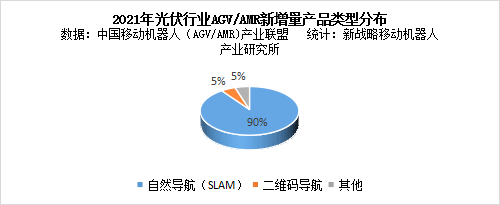 圖表:2021年度工業(yè)移動(dòng)機(jī)器人主要應(yīng)用市場(chǎng)根據(jù)中國(guó)移動(dòng)機(jī)器人(AGV/AMR)產(chǎn)業(yè)聯(lián)盟數(shù)據(jù)、新戰(zhàn)略移動(dòng)機(jī)器人產(chǎn)業(yè)研究所統(tǒng)計(jì)顯示,2021年光伏行業(yè)新增AGV/AMR中,自然導(dǎo)航(SLAM)占比超過90%;其次是二維碼導(dǎo)航,占比約為5%;其他約為5%。目前光伏行業(yè)呈現(xiàn)出技術(shù)快速迭代的現(xiàn)狀,柔性化、定制化、快速更新是行業(yè)發(fā)展的趨勢(shì),對(duì)設(shè)備的柔性化要求很高,因此,當(dāng)前光伏工廠所應(yīng)用AGV/AMR基本以自然導(dǎo)航(SLAM)產(chǎn)品為主。