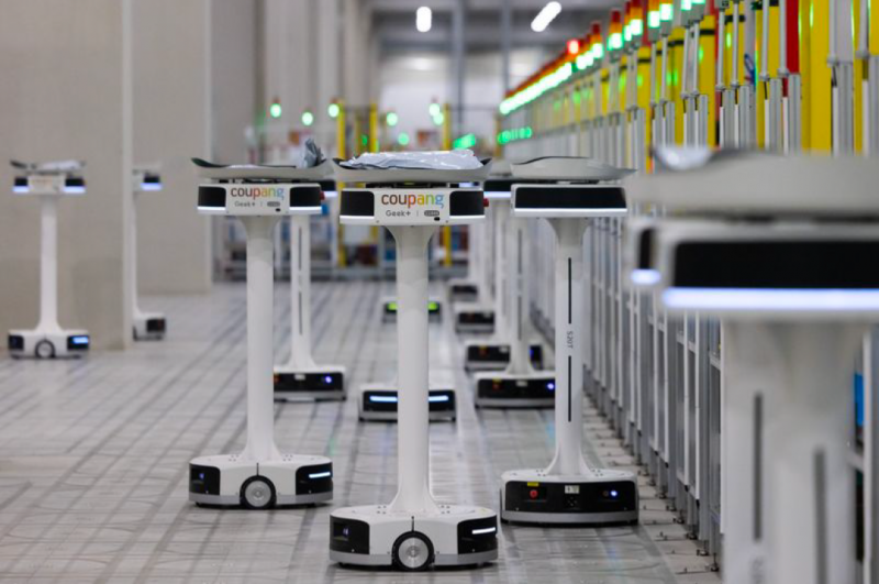 據(jù)全球最大的財(cái)經(jīng)資訊公司Bloomberg News(彭博新聞社)報(bào)道,韓國(guó)電商巨頭Coupang為快速實(shí)現(xiàn)盈利,在其大邱市的標(biāo)桿智能物流中心內(nèi)部署超1000臺(tái)機(jī)器人。