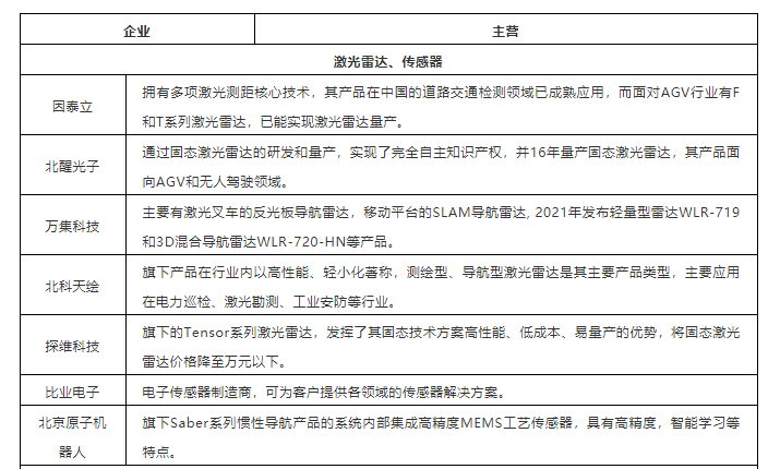 表:北京AGV相關(guān)零部件廠商(本表粗略統(tǒng)計,如有未完善之處,請指正?。?