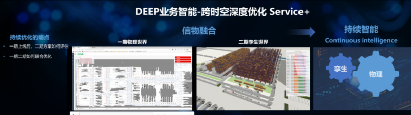 在持續(xù)優(yōu)化方面,Service+通過(guò)讓一期物理世界和二期孿生世界,實(shí)現(xiàn)信物融合,從而獲得持續(xù)智能,解決了二期方案評(píng)估,以及一期二期聯(lián)合優(yōu)化的問(wèn)題。