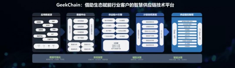 極智鏈(GeekChain):極智嘉極智鏈 (GeekChain) 將作為賦能行業(yè)客戶的智慧供應(yīng)鏈技術(shù)平臺(tái),充分發(fā)揮數(shù)據(jù)中臺(tái)和AI引擎的力量,綜合協(xié)同智能排產(chǎn)、智能選址、智能補(bǔ)貨分倉(cāng)、運(yùn)輸規(guī)劃、智能預(yù)測(cè)等系統(tǒng),最終成為供應(yīng)鏈控制塔,為企業(yè)提供智能決策。