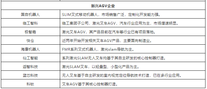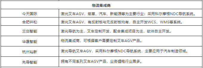 表:中國(guó)市場(chǎng)40+叉車AGV企業(yè)(排名不分先后,企業(yè)分類以其主營(yíng)業(yè)務(wù)為依據(jù))